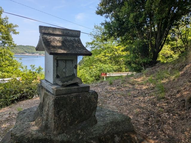 少し進んだ先に、Google Mapで「神社」と登録されている場所が。行ってみると、小さな石の祠があります。どんな神様を祀っているか気になったのですが、クチコミによると島の人もわからないとの書き込みが・・・・。
