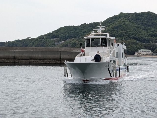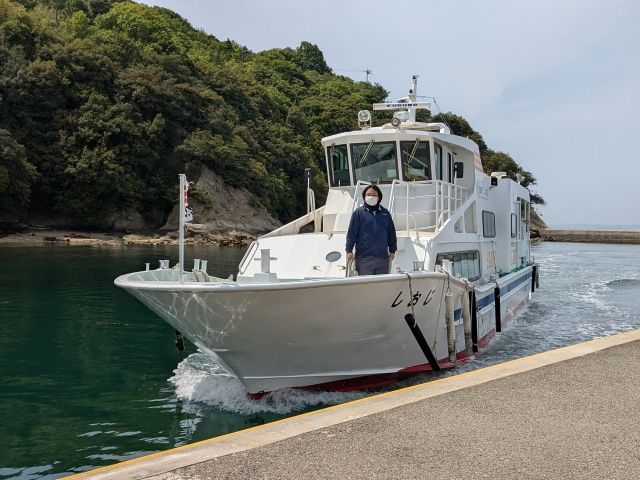 ということで、今回は大飛島から。本日3度目の乗船となる「しおじ」がやってきました。