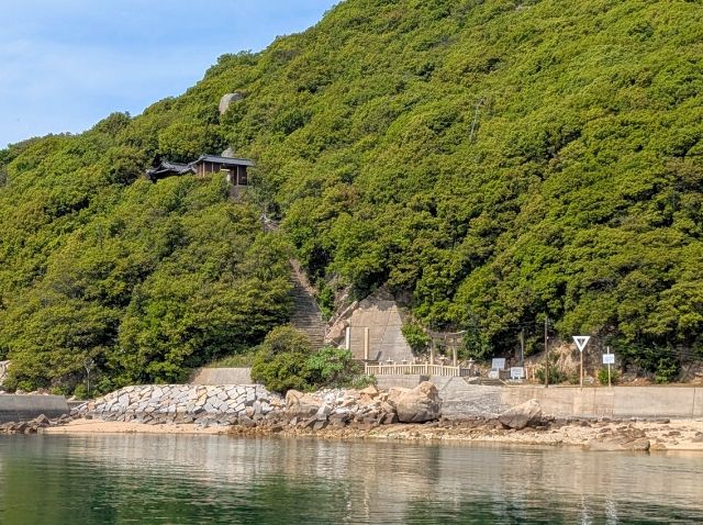桟橋を降りて左へ進むと、島神社があります。まずはそちらへ向かうことに。