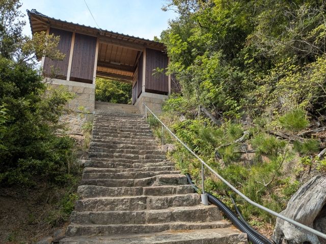 長い石段の先に門があります。小さな島ですが、かなり立派な門構え。