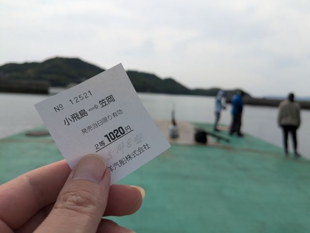 乗船券は「笠岡行き」に限り、港にいるおばちゃんが売ってくれます。運賃は1,020円。