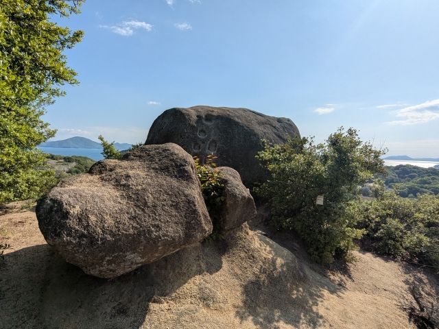 はと岩の先には、おまんじゅうみたいな岩も。このあたりには石でできたテーブルも設置されています。ファミマで買ってきたチョコクロワッサン食べてひと休み。