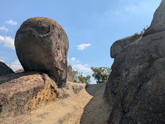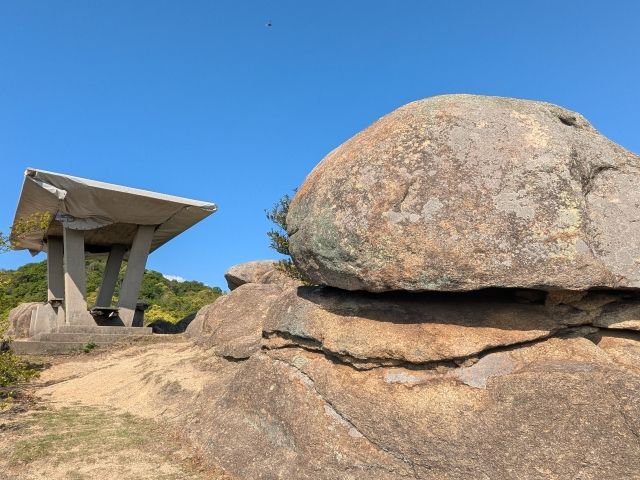 今度は肉まんみたいな岩が登場。この辺りにもまたまた休憩所があります。屋根があるので、ひと休みするならこっちの方が良さそうです。