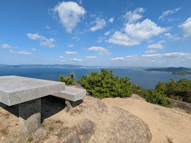 展望台に到着!目の前に広がるのは瀬戸内海の大海原!この開放感は、「島登山」の醍醐味です。
