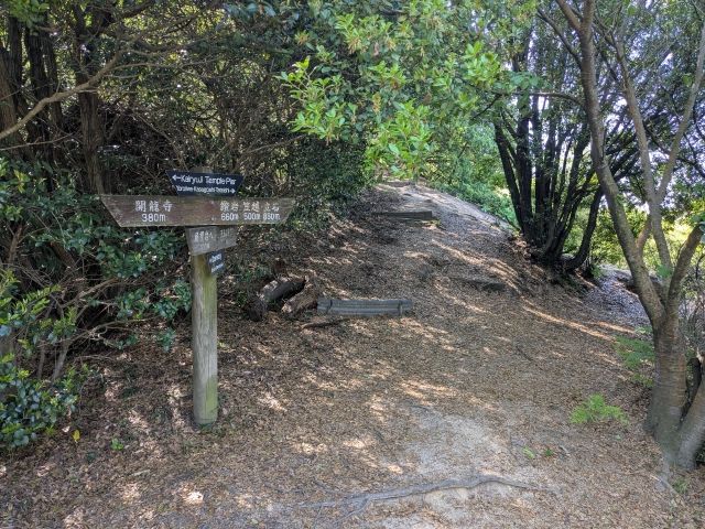 分岐点にさしかかります。「展望台270m」or「開龍寺700m鎧岩1,000m」。とりあえず展望台方面へ。ここからはちょっと息が上がる道のりです。
