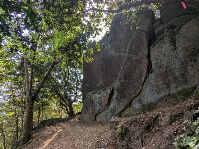 登山開始から15分ほどではと岩に到着!開けた場所に鎮座するシンボリックな巨岩。写真奥の岩はなかなか大きく、上れそうだけどぎりぎりで無理でした。