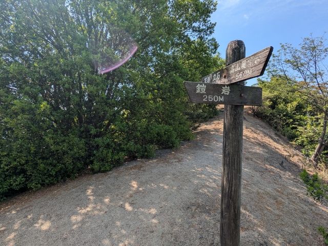差し掛かった分岐点。「笠越100m・立石430m」or「鎧岩250m」と記されています。「立石」は島の最高地点。行くか迷ったのですが、時間&体力と相談して、ここは鎧岩方面に進むことに。