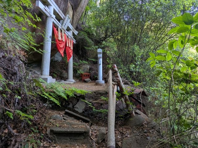 神明大権現に到着。鳥居の先では、大きな岩が祀られていました。