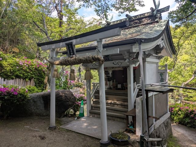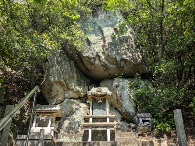 境内に立つ荒神社も、巨大な岩の前に鎮座しています。祠も石でできているのが「石の島」ならでは。