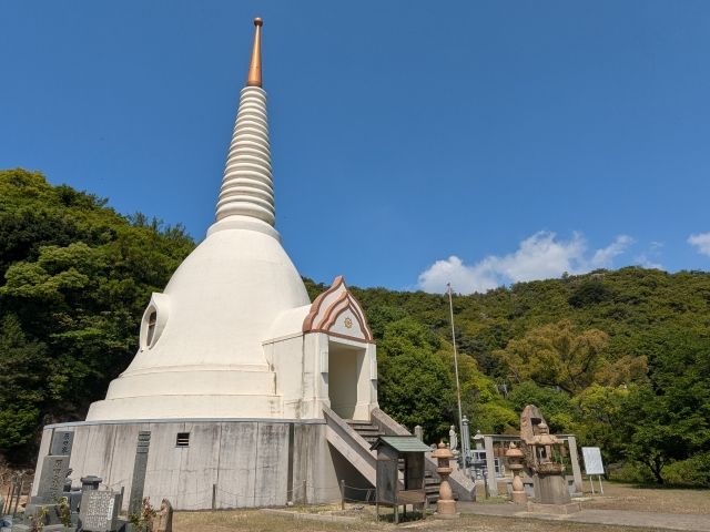 仏舎利塔は開龍寺の伽藍。ここは真言宗の寺院であり、離島とは思えない立派な本堂が構えています。