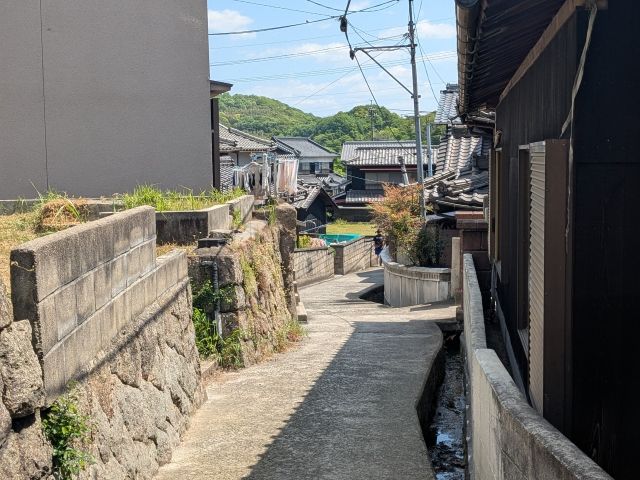 そろそろ船にそなえて港へと戻ります!開龍寺から港は徒歩10分ほど。集落内を進んでいきます。細く入り組んだ道は、離島ならではの光景。
