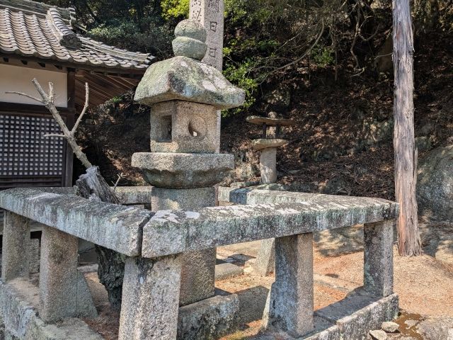 お堂のすぐそばに立つ石灯籠。高さ1.4mの花崗岩製であり、福山藩4代目藩主・水野勝種が寄進したもの。実は笠岡最古の石灯籠であるそうです。