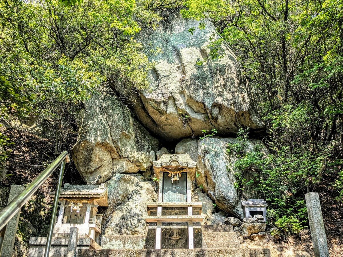 境内に立つ荒神社も、巨大な岩の前に鎮座しています。祠も石でできているのが「石の島」ならでは。