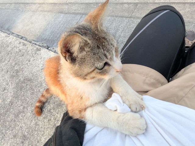 懐っこいネコもおり、エサを持っているわけでもないのにヒザに乗ってくれたりも。なんか人気者になれた気分です。