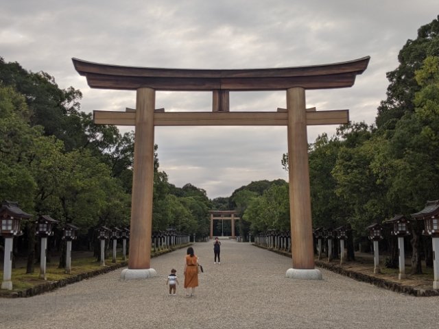 奈良県橿原市にある橿原神宮は、神武天皇と、その皇后である媛蹈鞴五十鈴媛(ヒメ タタラ イスズ ヒメ)を祀る神社。神武天皇は紀元前660年という、今から2,600年前に即位したとされる天皇で、日本国における初代天皇とされています。