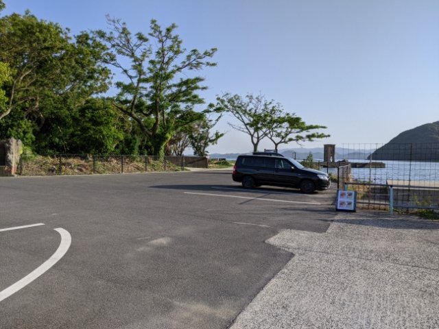 こちらが駐車場の写真。魚雷発射試験場が見えている(写真右奥)ので、30秒もせずにアクセスできます。