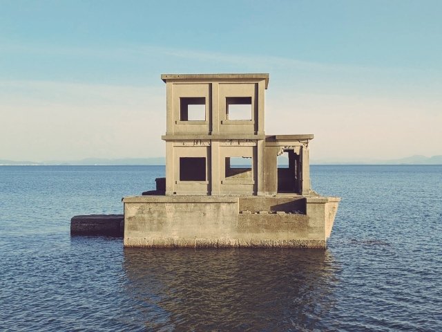穏やかな海に立つ構造物