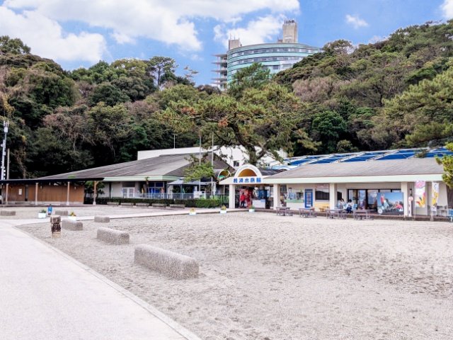 桂浜水族館は文字通り桂浜という浜辺にある水族館。水族館が海の近くにあるのは普通ですが、ここはビーチに直結。砂浜に建つ水族館なのです。