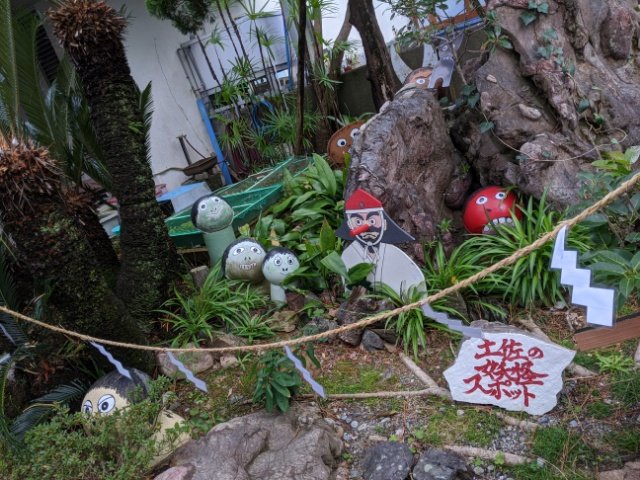 高知駅で観光客の目を引くべろべろの神様