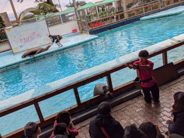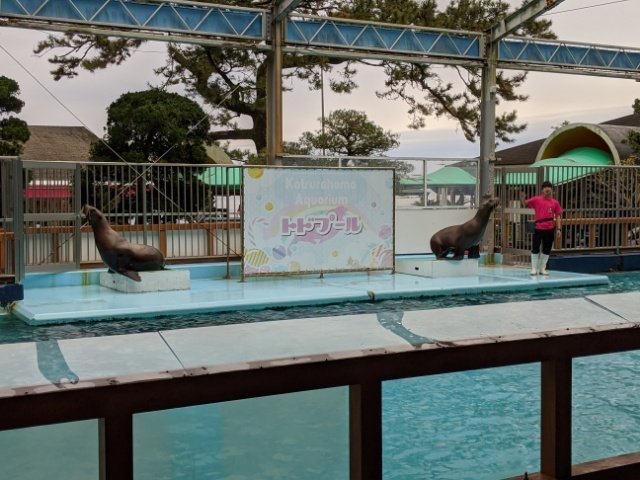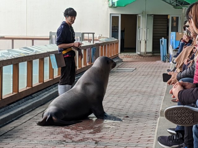 小さな水族館ですが、海獣も飼育しています。アシカショーや、ペンギンのエサやりなどイベントもありますが、必見なのはトドショー。通常13:00、土日祝限定で16:00にも開催しています。