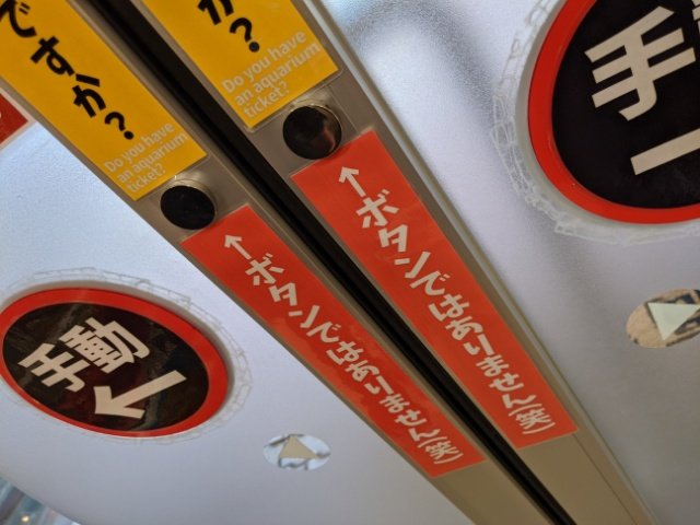 ショップを出ようとすると、そのドアに書かれていたのは「ボタンではありません(笑)」の文字・・・!