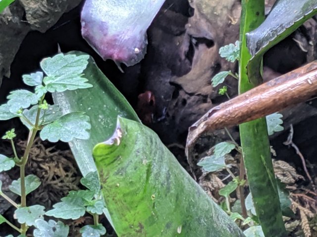 ここでは、なんとカエルが放し飼いにされています。葉っぱの裏や木の影をよく見ると、あちこちに隠れたカエルを見ることができます。稀に飛びついてくることもあるそう。