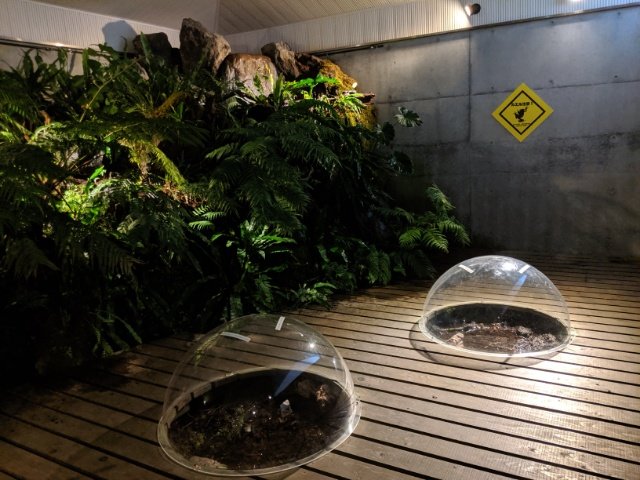 河津七滝のすぐ近くに誕生したカエル専門の動物園。ユニークなカエルがたっぷり飼育されているのですが、基本水槽内の物陰でじっとしています。草木に隠れたカエル探しのはじまりです。