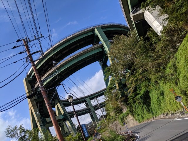 ぐるぐるまわるユニークな道路・河津ループ橋を渡って、国道414号線へ。伊豆縦貫自動車道、国道1号、箱根新道を通って小田原まで一気に帰ってきました。