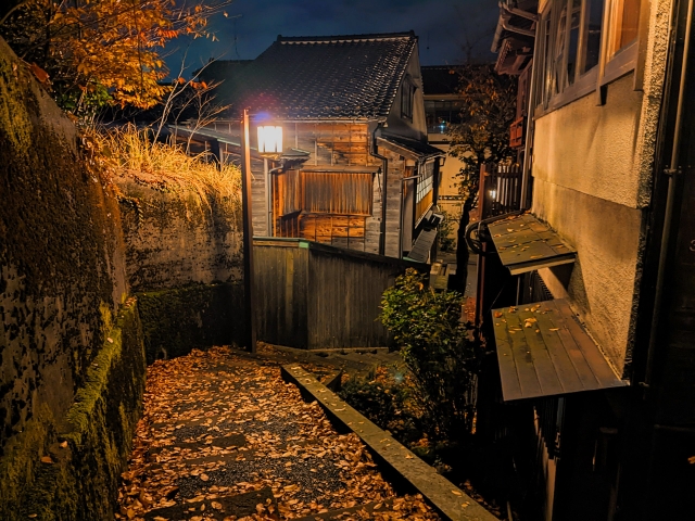 落ち着いた雰囲気が魅力の主計町(かずえまち)茶屋街。2つの坂道に挟まれた街は、まるで異世界のような静けさ。気になる名前の由来、そしてかつて行われた「旧町名復活運動」についても調べてみました。