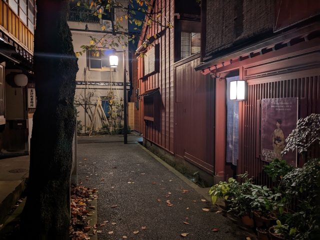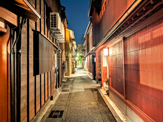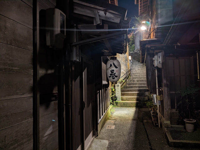 「昼間は営業している店が少ない」「夕方になると三味線の音などが聞こえてくることも」と耳にしていたので夜に訪問してみましたが、観光客の姿はもちろん、人の気配すら感じません・・・!