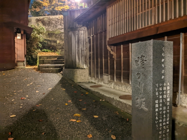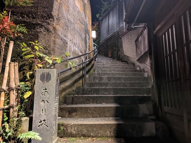 さらっと散策は終わり、もう一つの坂であるあかり坂へ。もともと名前の無い坂でしたが、2008年に地元住民から依頼を受けた作家・五木寛之氏が命名。