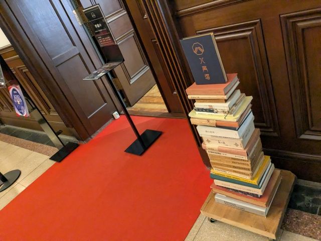 前述の通り建物の1階にはカフェ八角塔が入っています。店頭に積み上げられた本は、一番上が八角塔となっているのがめっちゃおしゃれ。