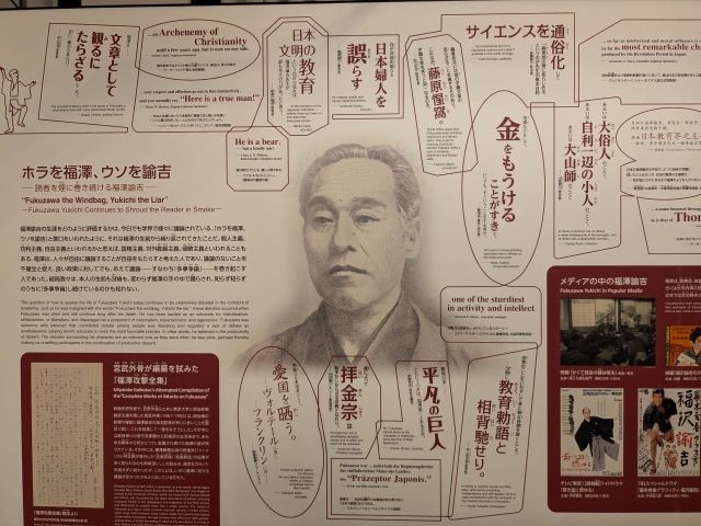 展示の中心は、福沢諭吉の生涯と慶應義塾の歴史、そして近代日本の教育のあゆみ。パネルで分かりやすくまとめられているので、読んでいくとすんなり入ってきます。