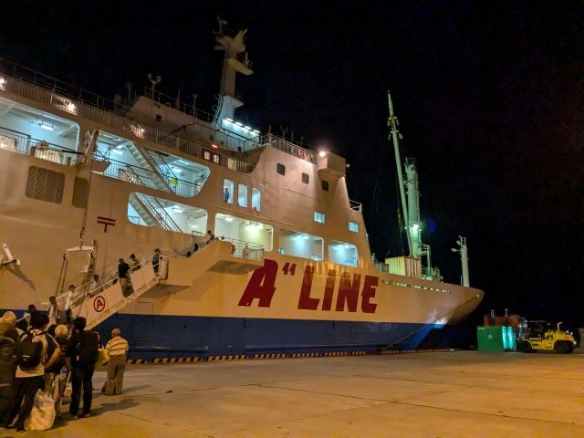 ということで、夜に上陸した喜界島。港には乗船待ちの列ができていました。皆夜行フェリーで鹿児島へ渡るのですね。