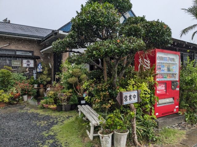 茶屋は、集落から離れた畑の真ん中にあります。今回私はレンタルバイクに乗ってやってきました。ちなみに、雨にうたれすぎてきんきんに冷えております。