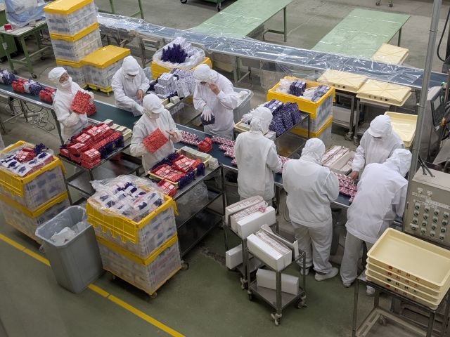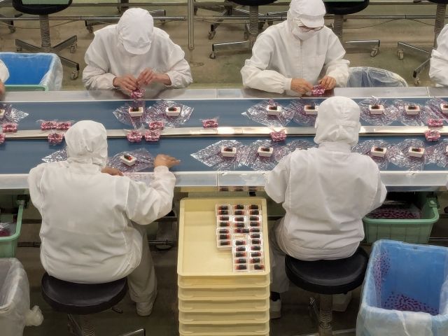 その後は、スタッフさんたちが手作業で包装していくポイントに。