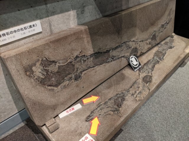 他にもヒゲクジラと化石やワニの足跡化石、流木の化石なども。火山堆積物である来待石は、その時代の様々な生物の化石が産出するそうです。