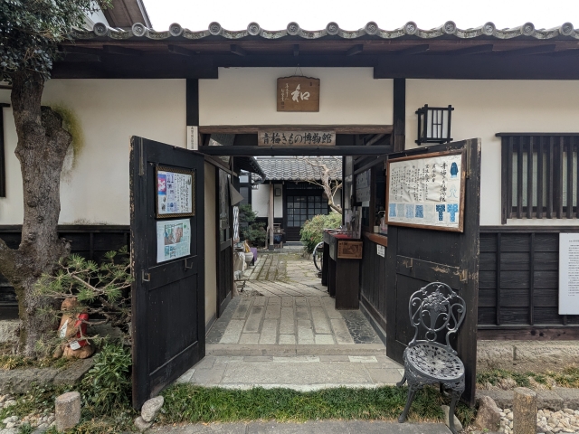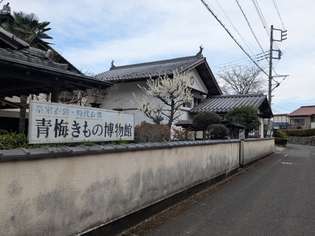 今回青梅市の吉野梅郷に向かうにあたり、せっかくなら周辺に何か見所はないかな?とGoogle Mapを探していたところ見つけたのが青梅きもの博物館。切妻造りの瓦屋根と白壁が、まるで蔵のような佇まいの施設です。