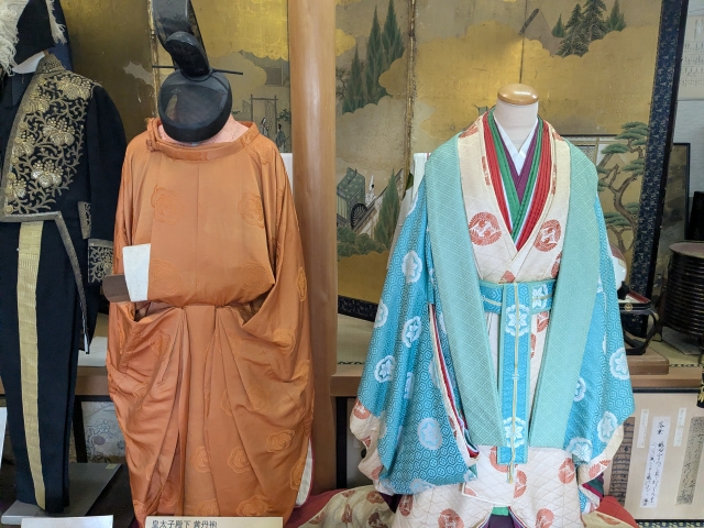 展示内容は月によって変化します。今回は3月に訪ねたので、皇室衣装が展示されているタイミングでした。