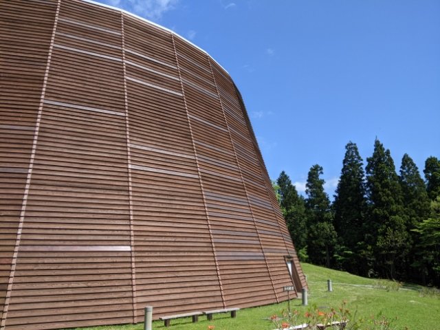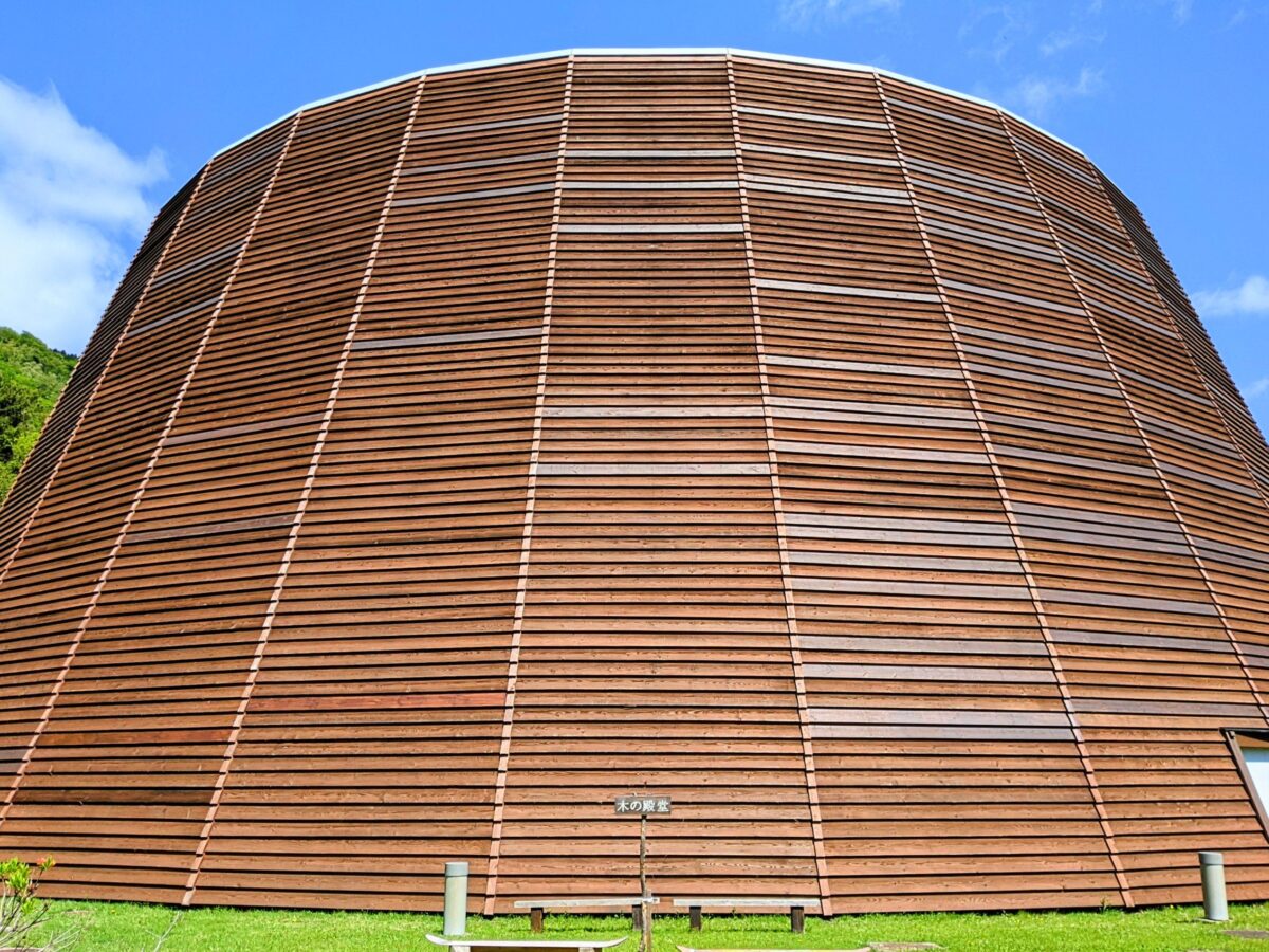 人里から遠く離れた高原に突如現れる巨大な木造建築「木の殿堂」。ドーム状に杉がびっしりと組み上げられた非常に印象的な外観をしています。この施設、いったい何なのでしょうか。