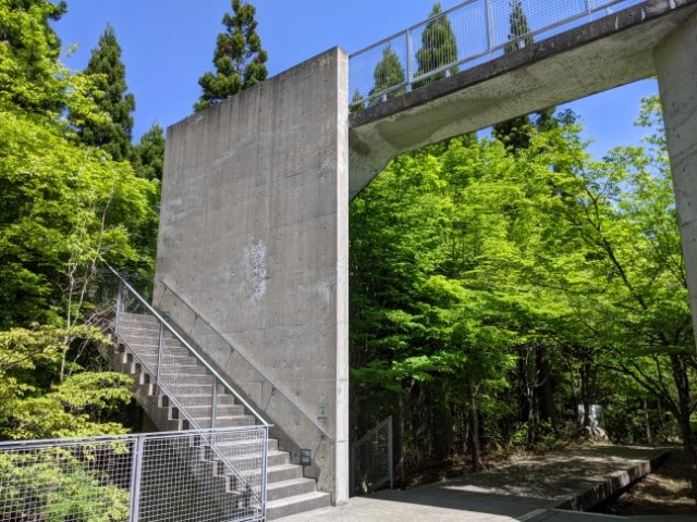 約200mほどの道を進んで行くと、屋外の階段へと繋がります。ここは別館となる展望棟。いかにも安藤忠雄らしいコンクリート仕立ての建築です。