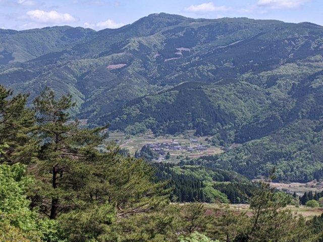 山の麓には里山の集落の姿も。瓦屋根や段々畑が続くのどかな光景。鳥のさえずりと風に揺れる木々のざわめきだけの静かな空間に心がほっと落ち着きます。