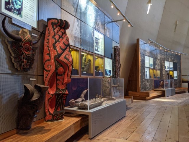 プリミティブな魅力が詰まった世界の木製民具の展示もあります。よく見ると「熱帯雨林」「照葉樹林」など植生によってわかれており、それぞれ見比べてみる、といった楽しみ方も。