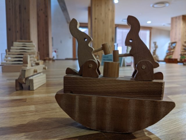 自由に遊べる木の玩具もたくさんあります。ぬくもりを感じるおもちゃに触れて、童心に帰ってみてはいかがでしょうか。