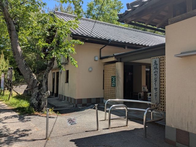 駐車場のそばに立つのはビジターセンター。トイレや自販機もあるので、まずはこちらに立ち寄り。