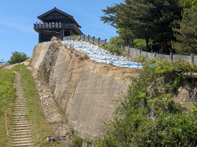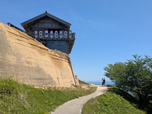 建築にばかり目が行ってしまいますが、城壁の土塁も凄い!その高さは5〜7m。柱と板で囲った中に土を入れ、一層毎に踏み固め、さらに棒で突き固めて強度を上げる土木技術「版築工法」によって仕上げられています。