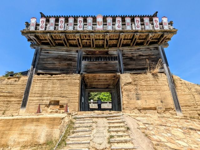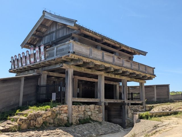 ビジターセンターから歩いて約10分で西門に到着。復元された三階建ての城門は迫力があり、目を奪われます。見晴らしの良いロケーションもめっちゃ良いです!