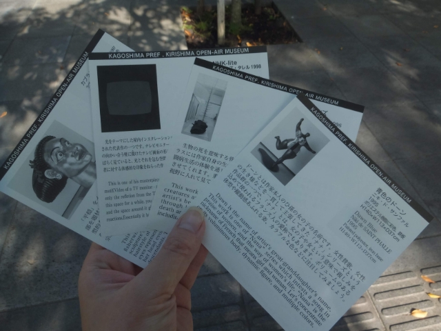 館内は残念ながら撮影禁止でしたが、作品の前にはカードが置いてあり、自由に持ち帰れます。気になる作品があった場合は、コレをもらっていくのがおすすめ。