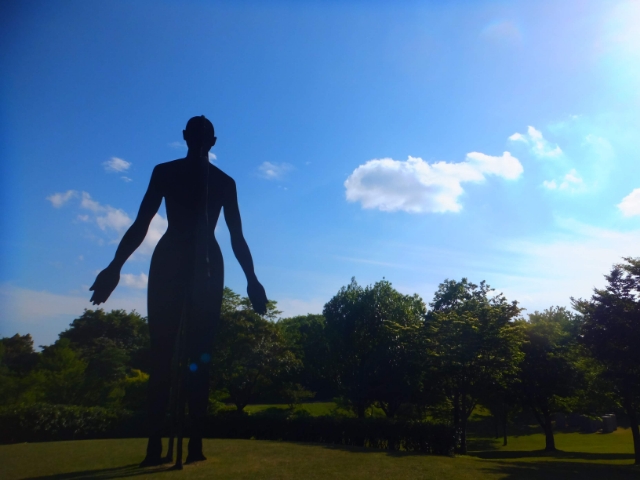 まず目に入るのは、《男と女》by ジョナサンボロフスキー。高さ約8mの巨人です。写真ではわかりづらいのですが、2人のシルエットがクロスしているため、見る角度によって印象が変わります。