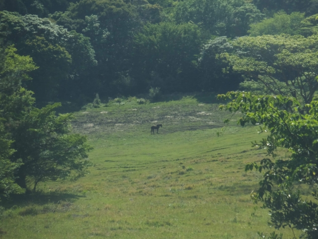 奥まで進んでみると、そこに広がるのは霧島のパノラマ。眺めていると、優雅に歩く馬が横切りました・・・!